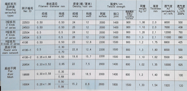 主要用于造紙廠紙張烘干,紡織印染品烘干,適用于m600/s以下車速。適用于水平帶式真空洗漿機(jī)底網(wǎng)(替代橡膠帶),特點(diǎn):透氣大,易修補(bǔ),網(wǎng)面平整,使用壽命長(zhǎng)。