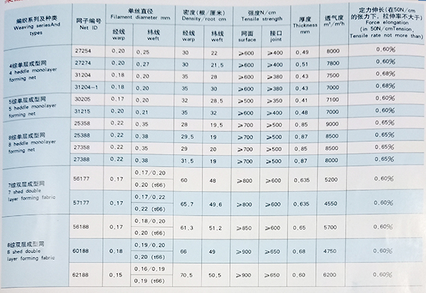 四綜系列單層網適合抄造文化用紙、印刷用紙、包裝用紙。